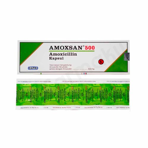 Amoxsan 500 adalah obat antibiotik produksi Caprifarmindo yang mengandung bahan aktif Amoxicillin 500 mg. Obat ini termasuk dalam golongan pensilin yang bekerja dengan cara menghambat pembentukan dinding sel bakteri, sehingga bakteri penyebab penyakit akan mati.
